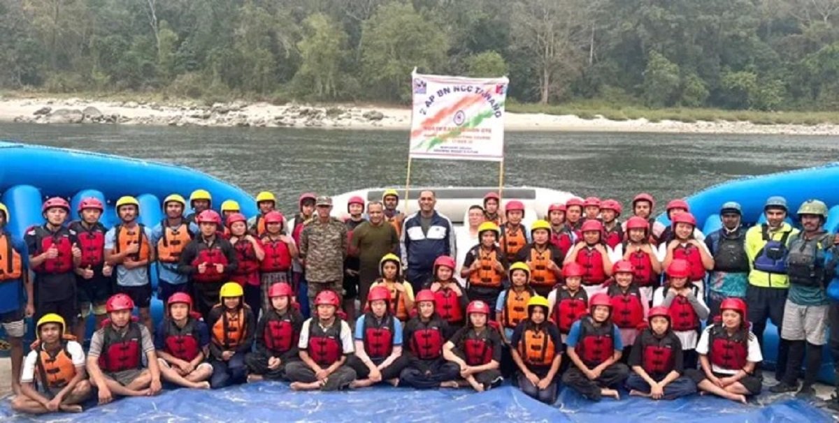 The White-Water Rafting Course by 2 AP Battalion NCC in conjunction with NIMAS concluded at Kameng River, Bhalukpong. Group Commander NCC Tezpur visited the camp, praising the cadets’ spirit and emphasizing the impact of adventure activities on confidence and teamwork. Fifty cadets completed the 10-day course, which included rigorous training in white water rafting techniques, safety protocols, and rescue drills, led by experienced NIMAS instructors. A short trek to Phinjuli and a visit to Tippi Orchid Research Centre further enriched the experience, promoting leadership and environmental awareness among the participants.